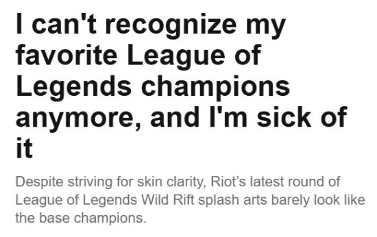 近日,外媒pcgamesn记者发文表示,如今的《英雄联盟》皮肤设计让人“几乎认不出自己最喜欢的英雄”,并直言对当前的美术方向感到失望与厌倦。